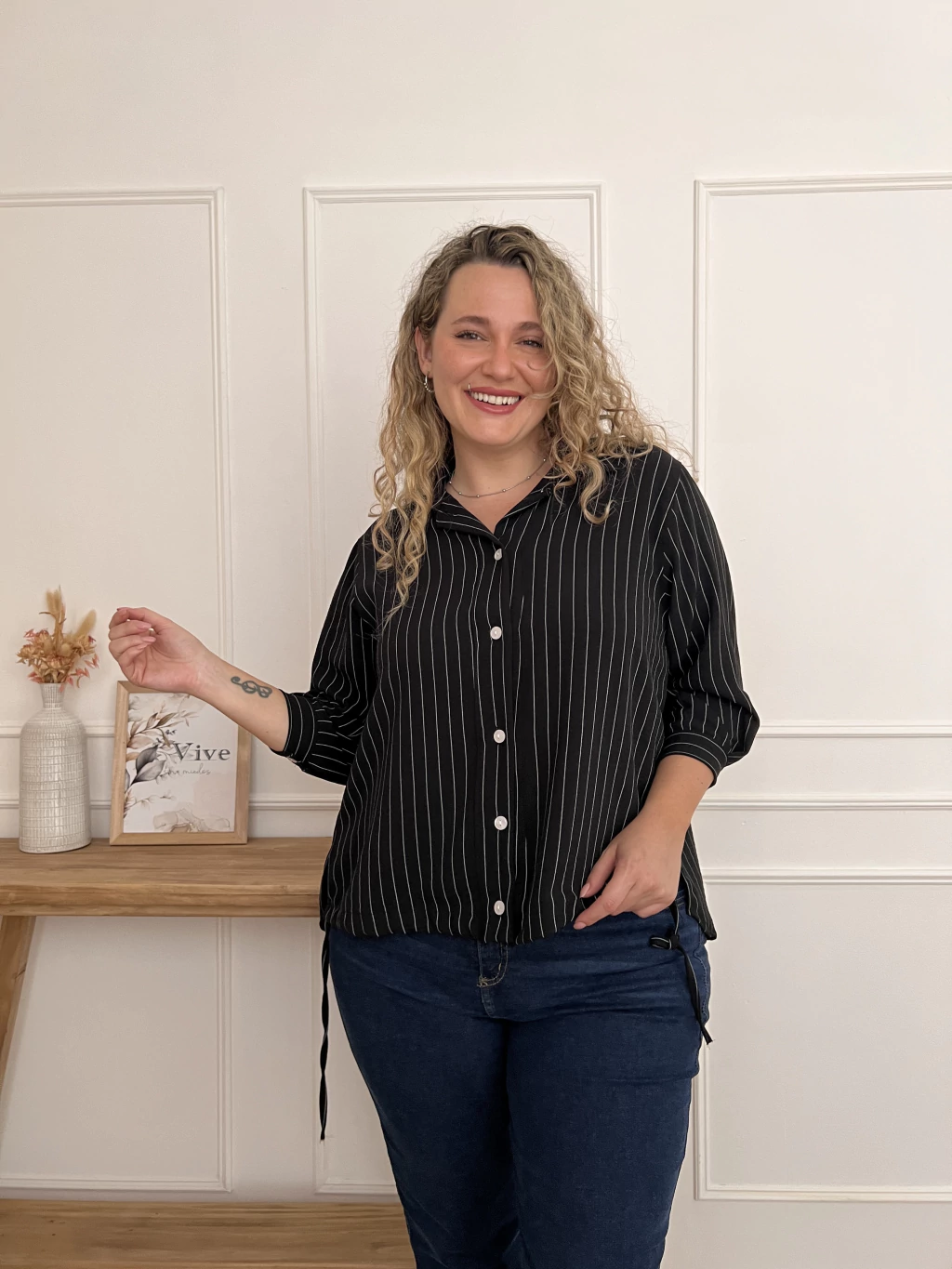 Las camisas rayadas son un básico que no te pueden faltar y la vas a combinar con todo.